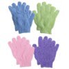 Pour a small amount of soap or body wash onto the gloves and rub over the body in circular movements.