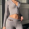 Women Fall 2 Pieces Outfits Solid Color Long Sleeve Zipper-Up Slim Fit Hooded Crop Tops and High Waist Long Pants Set